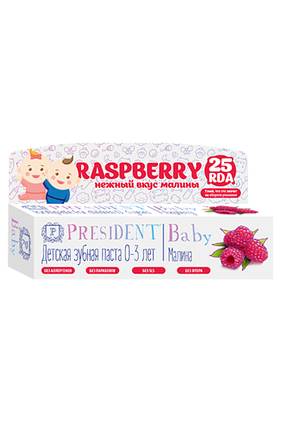 Детская зубная паста PRESIDENT Baby Raspberry для самых маленьких: с появления первого зубика до 3 лет. Обеспечивает деликатный уход за нежными деснами малыша и молочными зубами. Приятный малиновый вкус позволяет приучить ребенка к ежедневной гигиене полости рта и превращает чистку зубов в удовольствие.